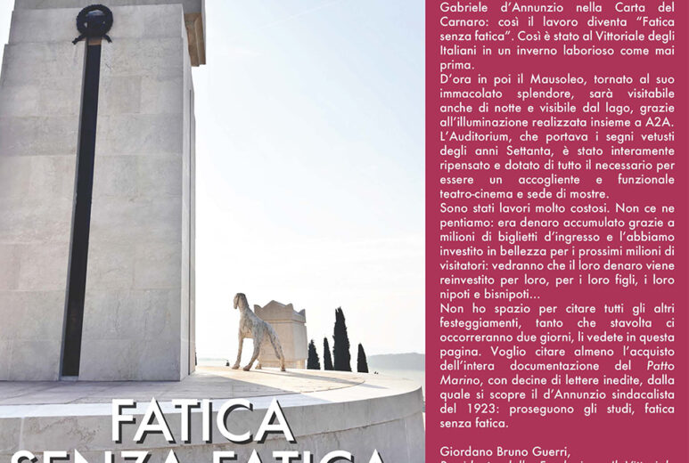 Increasingly rich in works, and as you see we pass from the digital to Marble and this seems to me very significant of our activity and of our life, and of D’Annunzio who would be very happy with this celebration of ours between past and future."